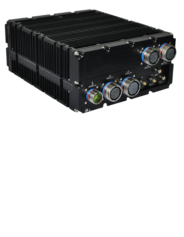 - Video Outputs: Independent 2 x 3G-SDI, 2 x DVI/DisplayPort, 1 VGA (optional), 2 x ARINC 818 (optional)
