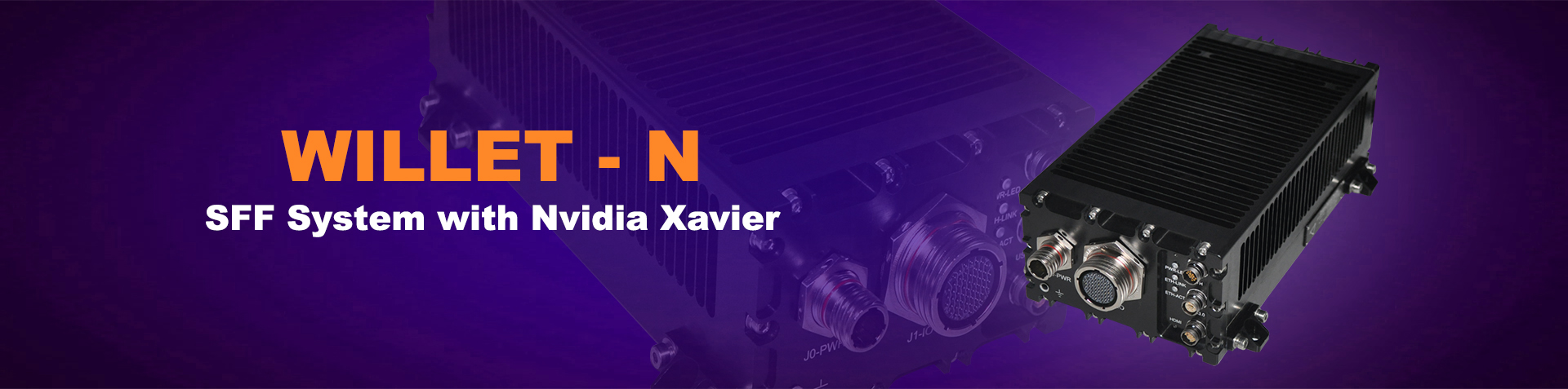 The Willet-N is a rugged ultra-SFF GPGPU AI SWaP Optimized Supercomputer, specially tailored for the avionic, military and rugged industrial market. It incorporates the powerful NVIDIA® Jetson AGX Xavier-based AI SOM that provides 512 CUDA cores and 64 Tensor cores, reaching 32 TOPS (INT8) and 11 TFLOPS (FP16) at a remarkable level of energy efficiency.